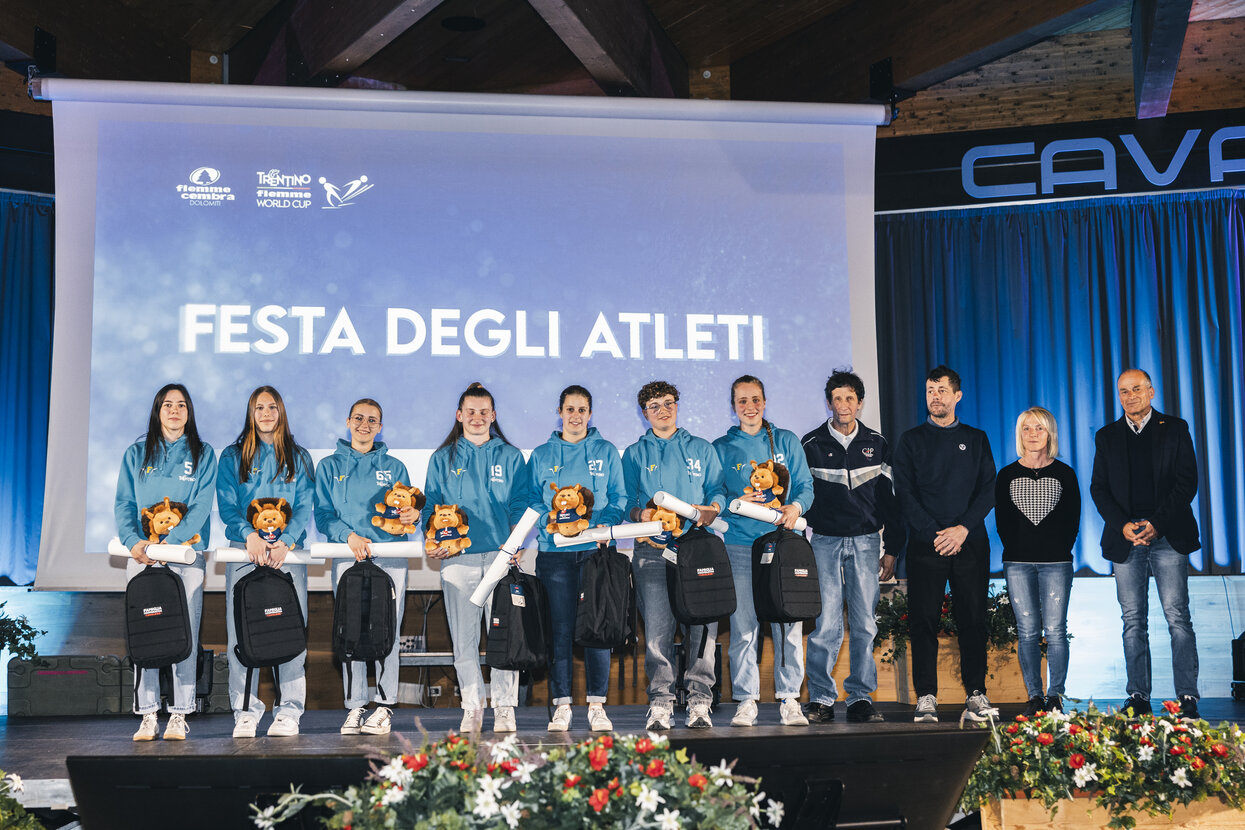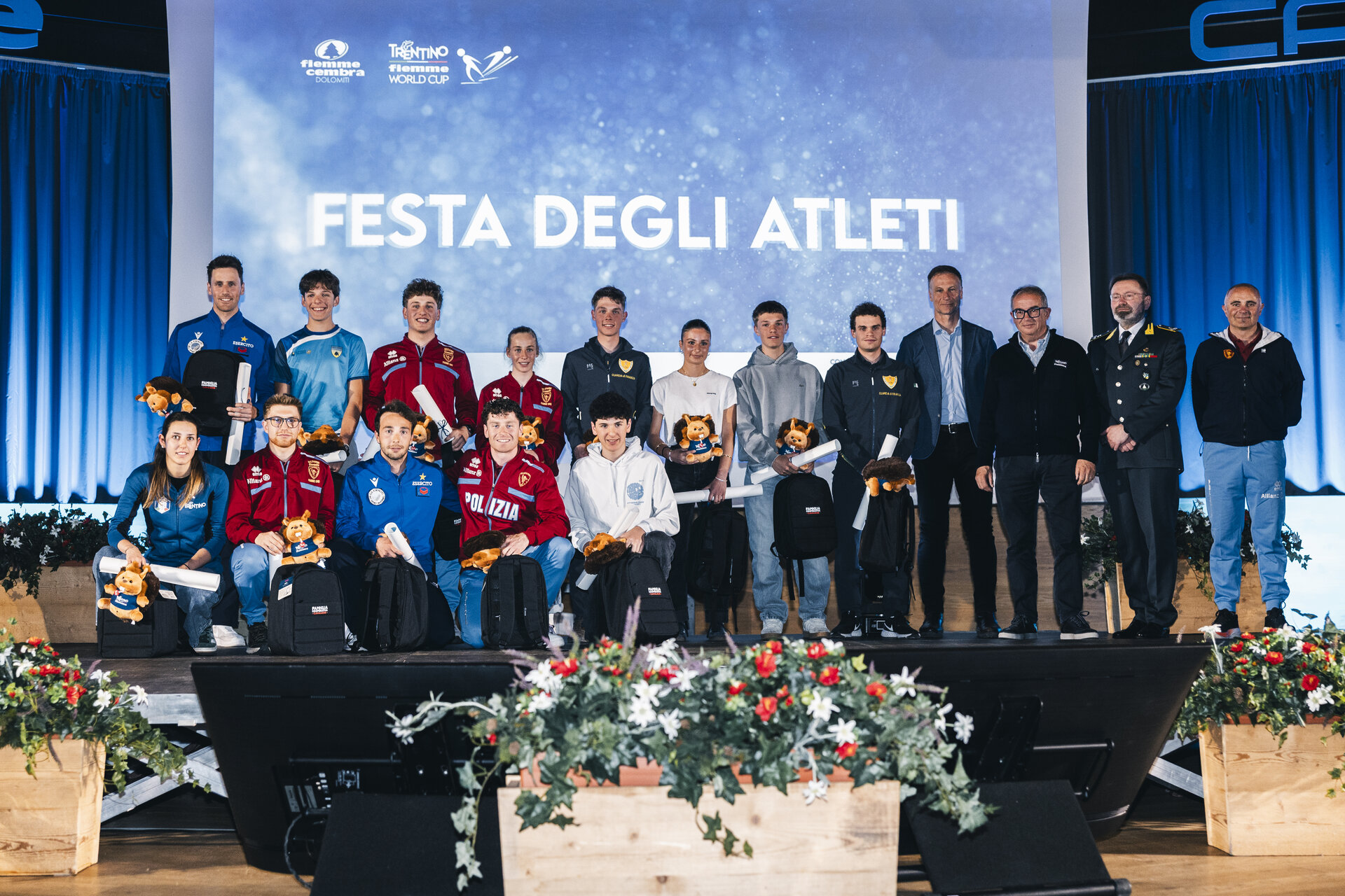 Attraverso la frizzante conduzione di Silvia Vaia e Giacomo Panozzo del comitato organizzatore Nordic Ski Val di Fiemme, la Festa degli Atleti è entrata nel vivo con gli sport invernali, tra premiazioni e istituzioni sul palco. A conferire i riconoscimenti durante la serata si sono alternati tra gli altri Giulia Zanotelli, Assessore all’agricoltura, promozione dei prodotti trentini, ambiente, difesa idrogeologica e enti locali, la Consigliera PAT Maria Bosin, i sindaci dei comuni della Valle, l’Assessore allo sport del Comune di Moena Felice Canclini, il comandante della Compagnia Carabinieri Cavalese Daniele Di Vincenzo, il comandante della Scuola Alpina della GdF Sergio Giovanni Lancerin e il comandante della stazione GdF di Cavalese Claudio Palleschi, oltre al responsabile del Coordinamento olimpico provinciale Tito Giovannini, il vicepresidente del CONI Trento Massimo Eccel e tanti altri. Al loro fianco anche ex campioni tra cui l’oro olimpico Franco Nones, il fondista Loris Frasnelli, il saltatore Virginio Lunardi, il bobbista Edmund Lanziner e il combinatista Andrea Longo.