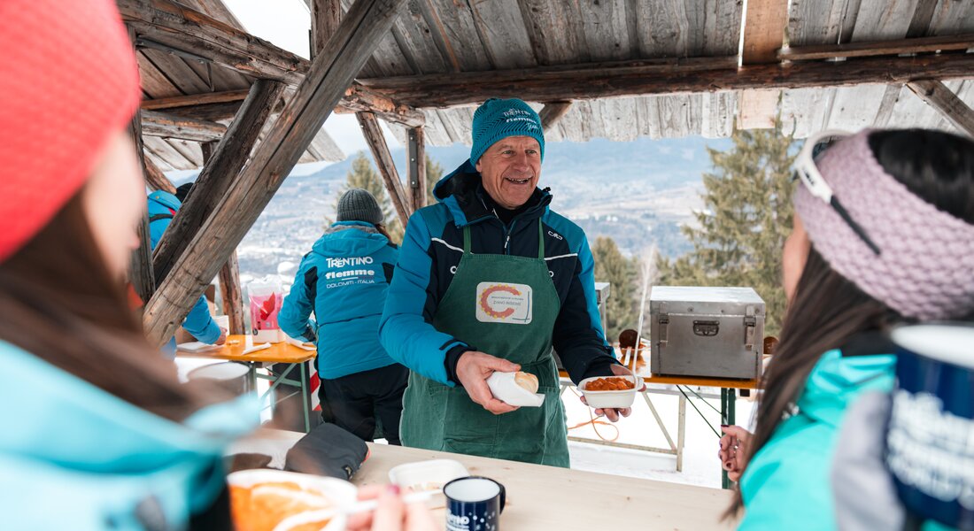 Risalendo i ripidi pendii della Final Climb potrete incrociare le postazioni delle 4 associazioni locali. A bordo pista ogni “posta” propone degustazioni di prodotti genuini della Val di Fiemme e del Trentino: caffè del boscaiolo, polenta con formaggio,crauti e salsiccia, ambleti, panini con la porchetta.
